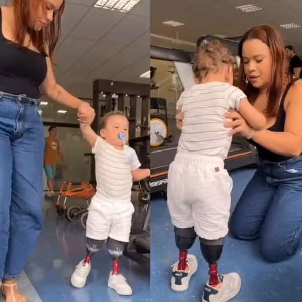 Mesmo com o avanço no tratamento, Noah ainda precisa de apoio para caminhar. De acordo com a mãe, a ausência das mãos também dificulta o equilíbrio e a adaptação às próteses.